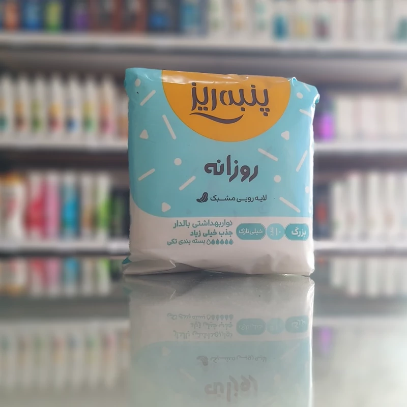 پنبه ریز نواربهداشتی روزانه مسافرتی با لایه رویی مشبک بسته 10 عددی سایز لارج