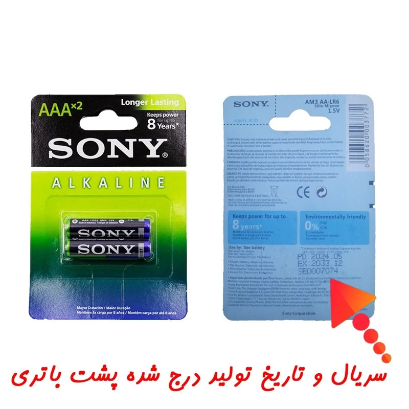 باتری قلمی آلکالاین سونی اصل . بسته 2 عددی . بسیار با کیفیت