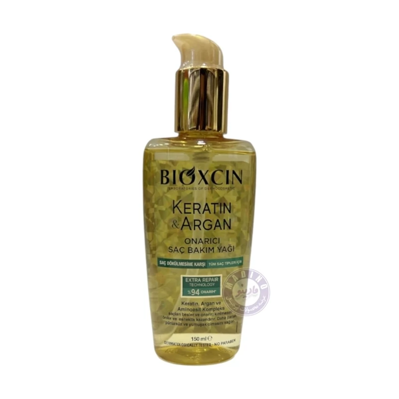 روغن ترمیم کننده مو بیوکسین BIOXCIN حاوی کراتین و آرگان مناسب انواع مو ساخت ترکیه 150 میل