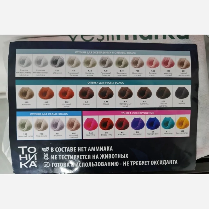 شامپو رنگساژ تونیکا Tonika کد9.02 رنگ مرواریدی اورجینال روسیه شامل کاتالوگ جهت مشاهده رنگ ها برای انواع مو
