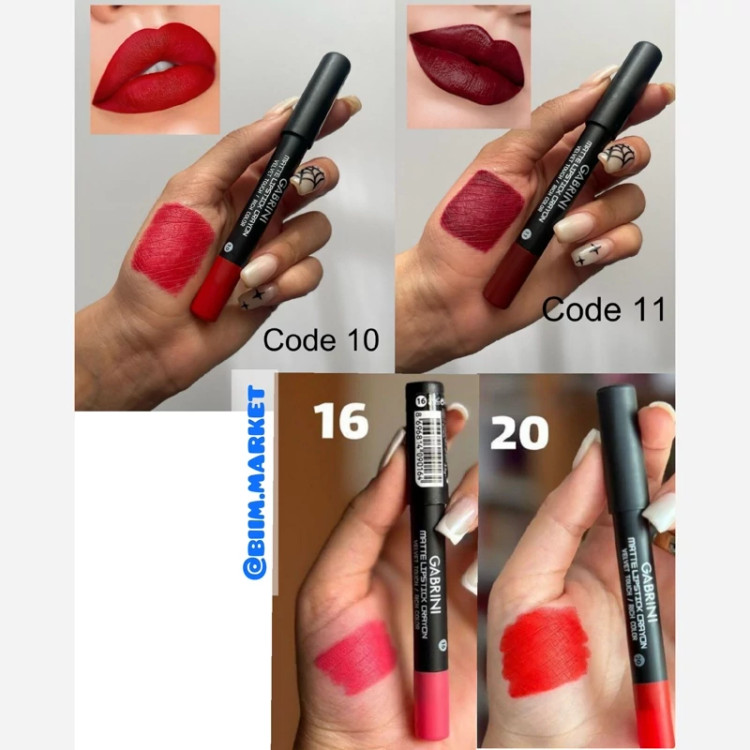 رژ لب مدادی گابرینی Gabrini حاوی ویتامین E انواع تناژ قرمز بسیار جذاااب ماندگاری بالا و بافت مخملی