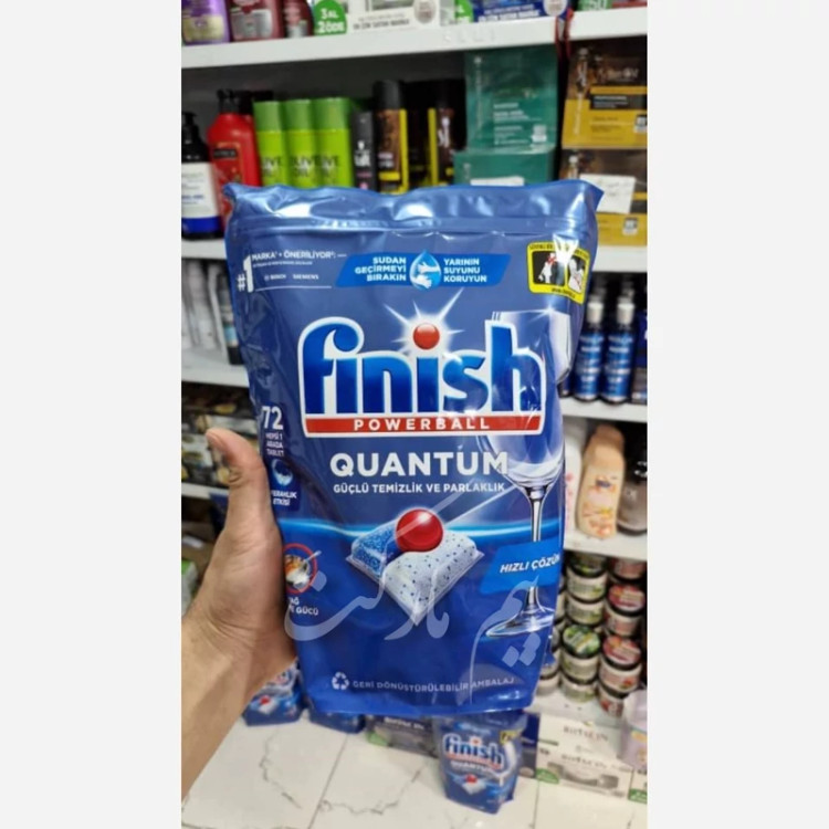 قرص فینیش ماشین ظرف شویی کوانتوم سه کاره 72 عددی 748 گرم محصول ترکیه پاک کننده و جلا دهنده با تاریخ انقضای جدید