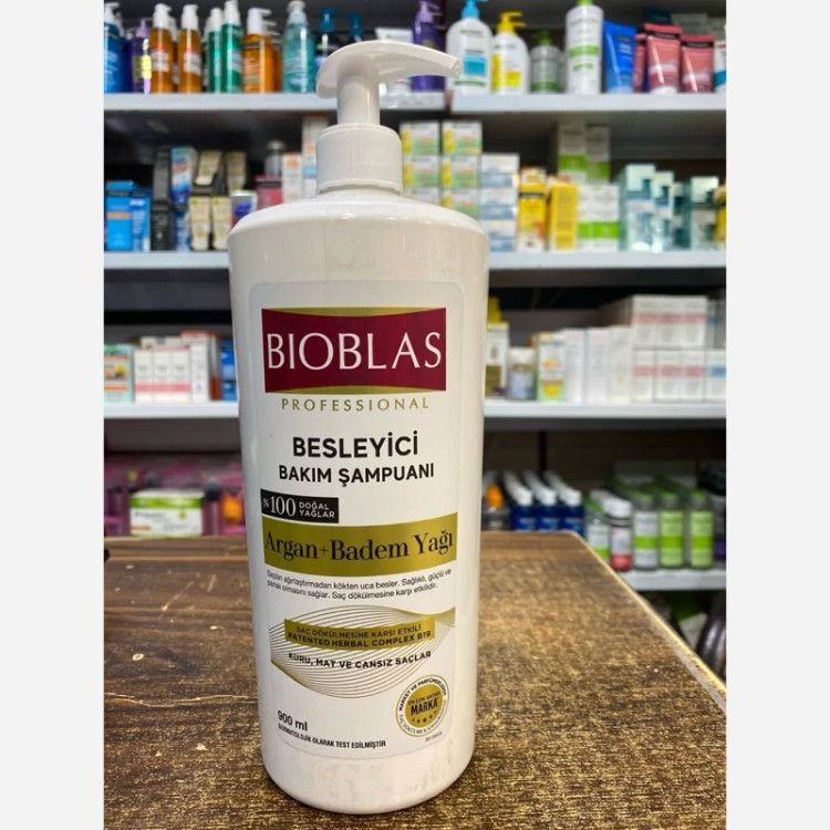 شامپو بیوبلاس آرگان و بادام با خواص تغذیه کننده Besleyici برای موی خشک و کدر حجم 900 میل