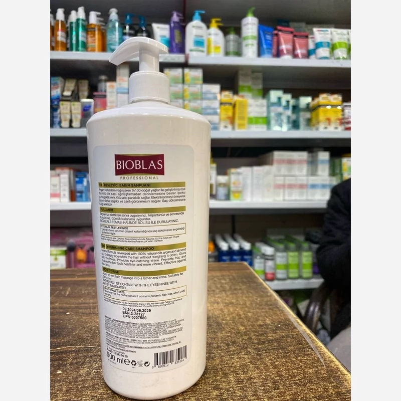 شامپو بیوبلاس آرگان و بادام با خواص تغذیه کننده Besleyici برای موی خشک و کدر حجم 900 میل