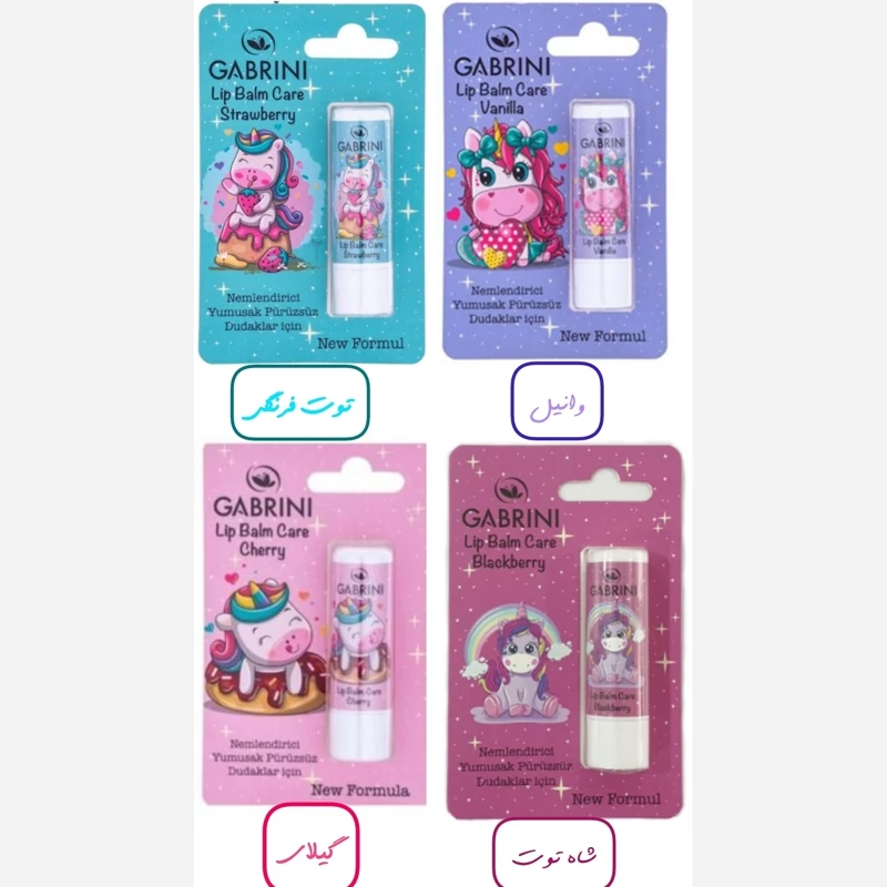 بالم لب یونیکورن گابرینی Gabrini میوه ای بی رنگ عروسکی کیوت مرطوب کننده لب مناسب فصل سرد سال و مانع خشکی لب مناسب هدیه