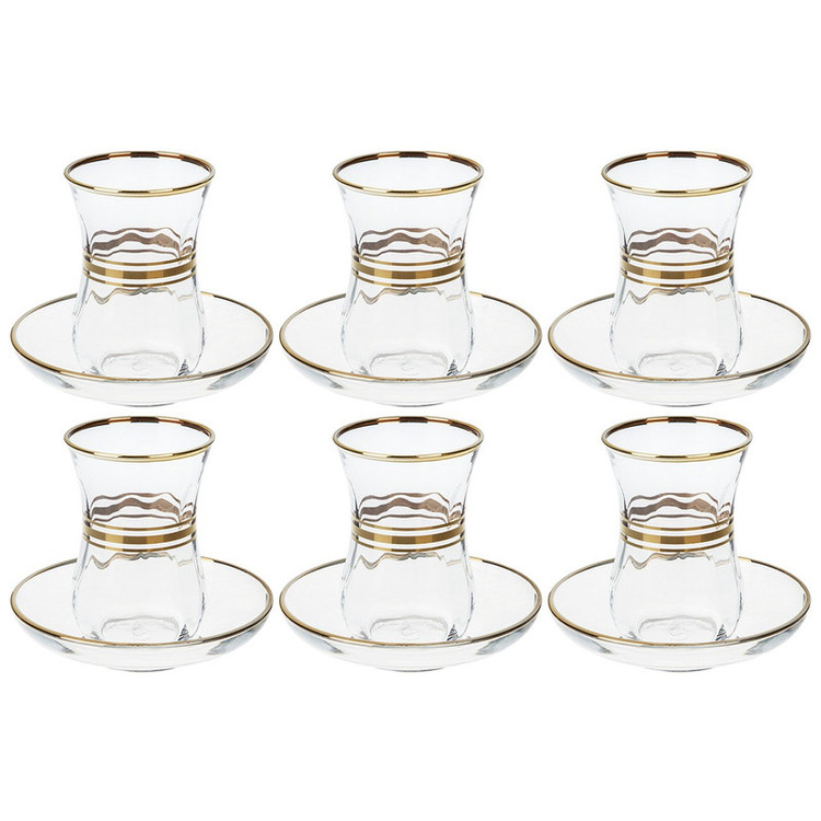 استکانهای کمرباریک که بیشتر در زمانهای قدیم استفاده میشدند، این روزها بسیار موردتوجه هستند. سبک سنتی این استکانها با نوار طلایی تزیینی و نعلبکی گودی که دارند، گزینهای ایدئال برای دکوراتیو است. استکان و نعلبکی «پاشاباغچه» سری «ورکشاپ» کد «97177» شامل یک ست 12عددی بوده و یکی از زیباترین تولیدات این برند است. این ست زیبا استکانهایی ساده دارد که دورتادور آنها را نواری طلایی پوشانده است. وجود نعلبکی باعث شده دیگر نیازی به زیرلیوانی نداشته باشید و لکی روی میز جلومبلی بر جای نماند. این ست زیبا برای مهمانیهای رسمی و دوستانه قابلاستفاده است و رنگ چای را تغییر نمیدهد. برای حفظ زیبایی و دوام رنگ طلایی این ظروف بهتر است از شستن آنها با ماشین ظرفشویی خودداری شود. ممکن است رنگ محصولات شیشهای با گذشت زمان و در اثر شستوشو کدر شود. برای رفع این مشکل کافی است گاهی ظرف خود را در محلول رقیق سرکه و آب بخیسانید. با این کار مشکل شما برطرف خواهد شد.