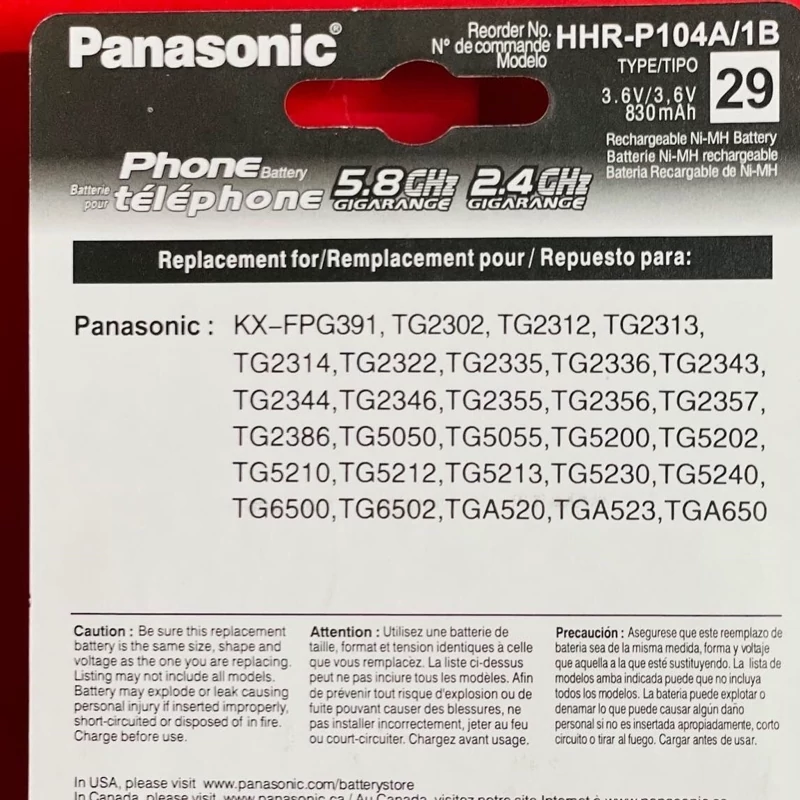 باتری تلفن بی سیم شارژی پاناسونیک P104 3.6V 830mAh