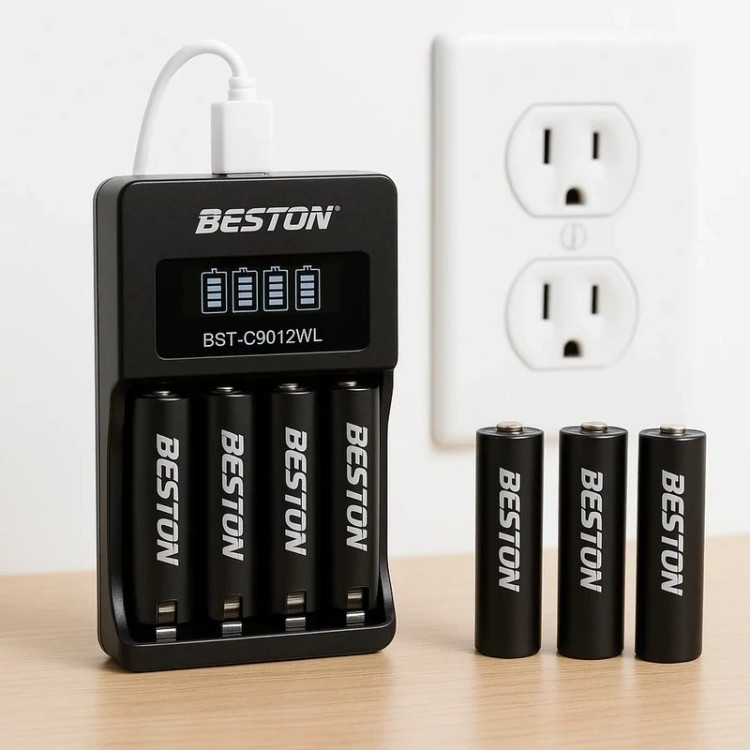 شارژر باتری بستون LCDدار 4تایی کد BESTON BST-C9012WL