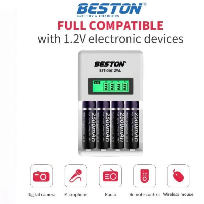 شارژر باتری بستون LCDدار 4تایی کد BESTON BST-C9012WL