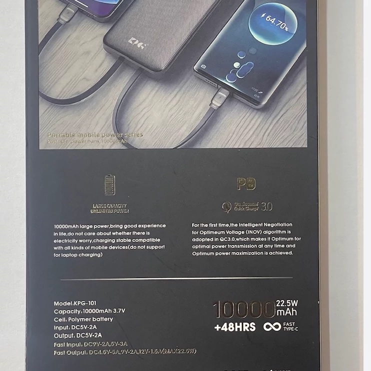 پاوربانک کی پی جی فست شارژ 22.5W مدل KPG-101 ظرفیت 10000 میلی آمپر ساعت