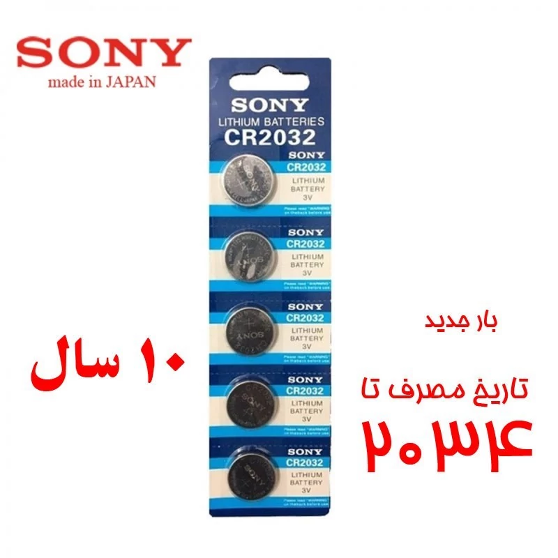 باتری سکه ای 2032 CR سونی اصل ژاپن . بسته 5 عددی