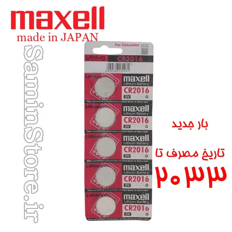 باتری سکه ای 2016 مکسل اصل ژاپن . بسته 5 عددی