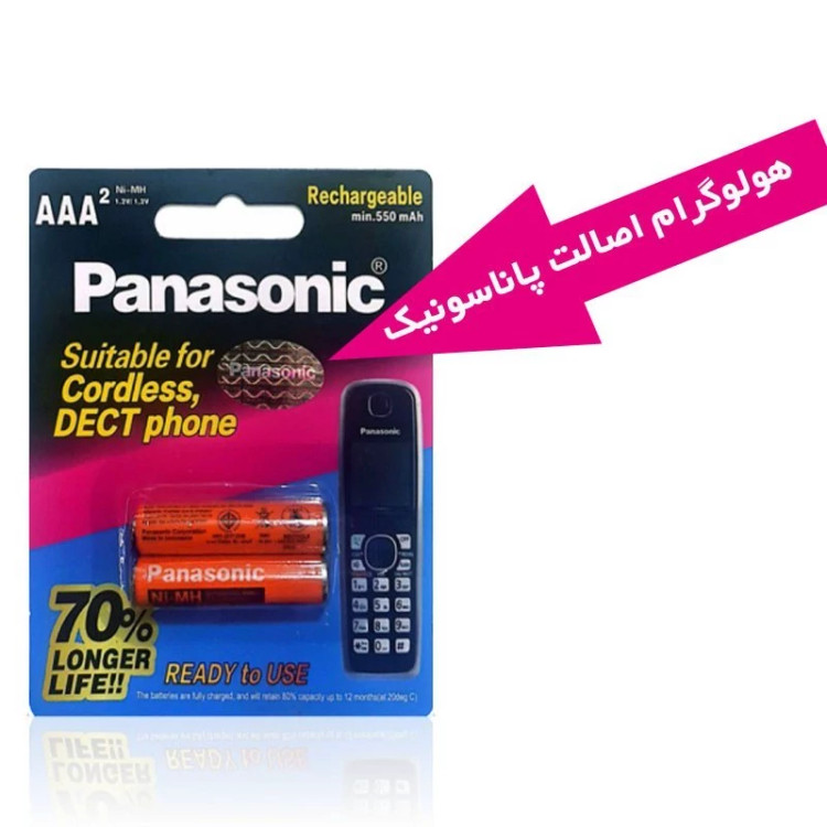 باتری قابل شارژ پاناسونیک اصل .دارای هولوگرام اصالت . ساخت مالزی . نیم قلم AAA قابل شارژ