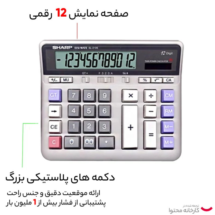 محصولی که در این قسمت مشاهده میکنید یکی از ماشینحسابهای رومیزی این شرکت است که قادر است در صفحهنمایش خود تا 12 رقم را نمایش دهد. این ماشینحساب که امکانات محاسباتی ابتدایی دارد برای انجام عملیات ریاضی پایه طراحی شده است و ازاینرو برای استفاده در محیطهای فروشگاهی مناسب است. از این ماشینحساب رومیزی انتظار نداشته باشید که عملیات پیچیدهی ریاضی را برای شام انجام دهد. با توجه به رومیزی بودن محصول، صفحهنمایشی که برای آن تعبیه شده است از ابعاد بزرگی برخوردار بوده و بهآسانی قابلخواندن است. برق مصرفی در این ماشینحساب از دو منبع باتری و پنل خورشیدی تأمین میشود. با این حساب میتوان گفت که برای مدتهای طولانی نیازی به تعویض باتری نخواهید داشت زیرا دستگاه برق مصرفی خود را با جذب نهور خورشید تأمین خواهد کرد و تنها در مواقع اضطراری مانند مواقعی که نور محیط کافی نباشد به باتری نیازی خواهید داشت.