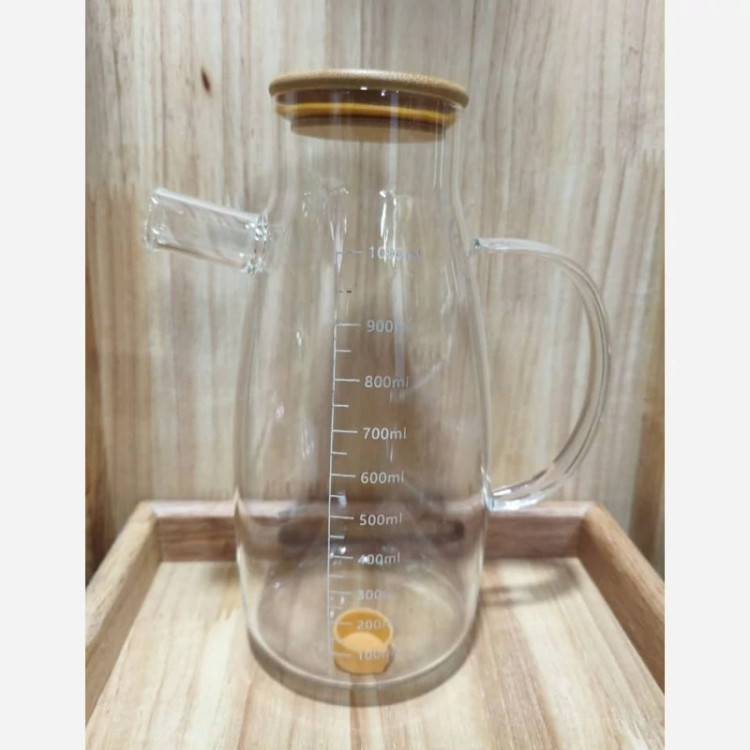 ظرف پیرکس روغن ریز ، حجم 1000 میلی لیتر ، درب چوبی واشر دار ، ساخت کشور چین