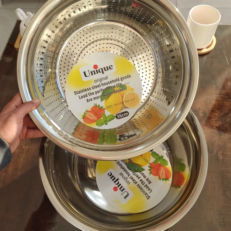 آبکش و لگن استیل یونیک سایز 36 لگن و صافی استیل دوتایی یونیک