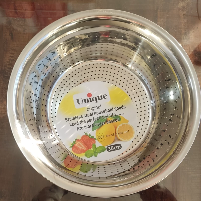 آبکش و لگن استیل یونیک سایز 36 لگن و صافی استیل دوتایی یونیک