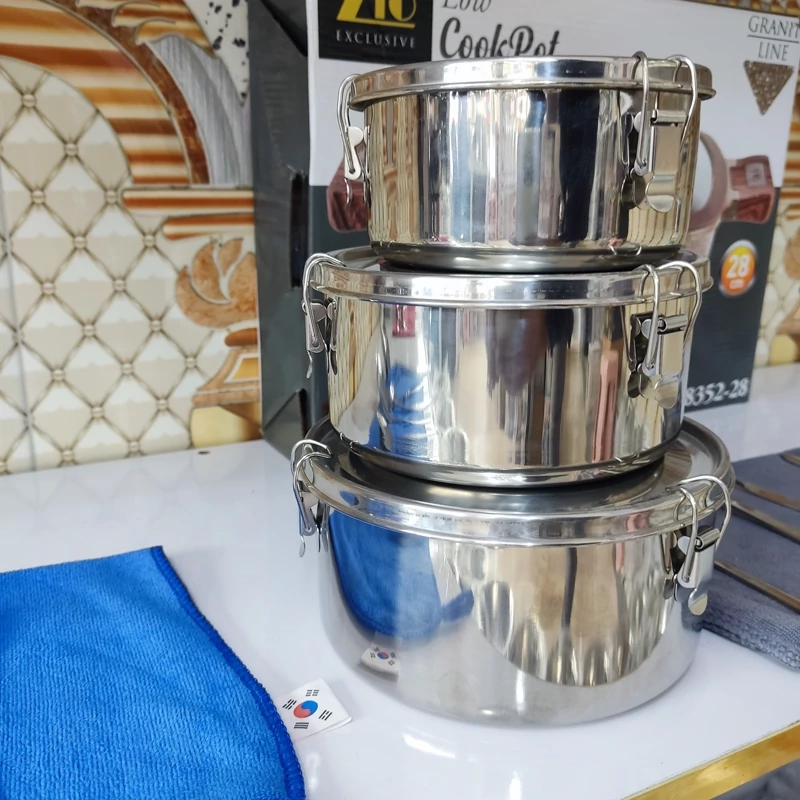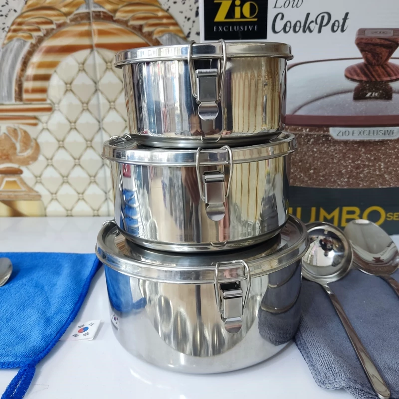 ظرف غذای سه تیکه استیل درب دار یونیک و کرکماز