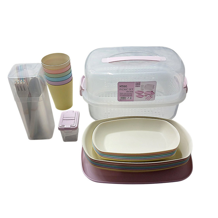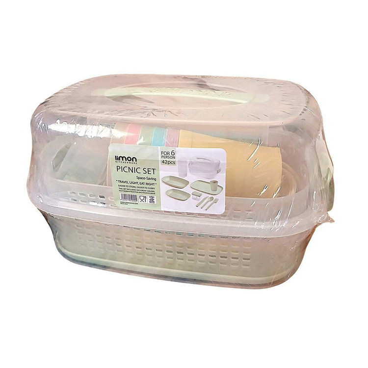 سبد پیک نیک 42 پارچه لیمون مدل پاستیلی