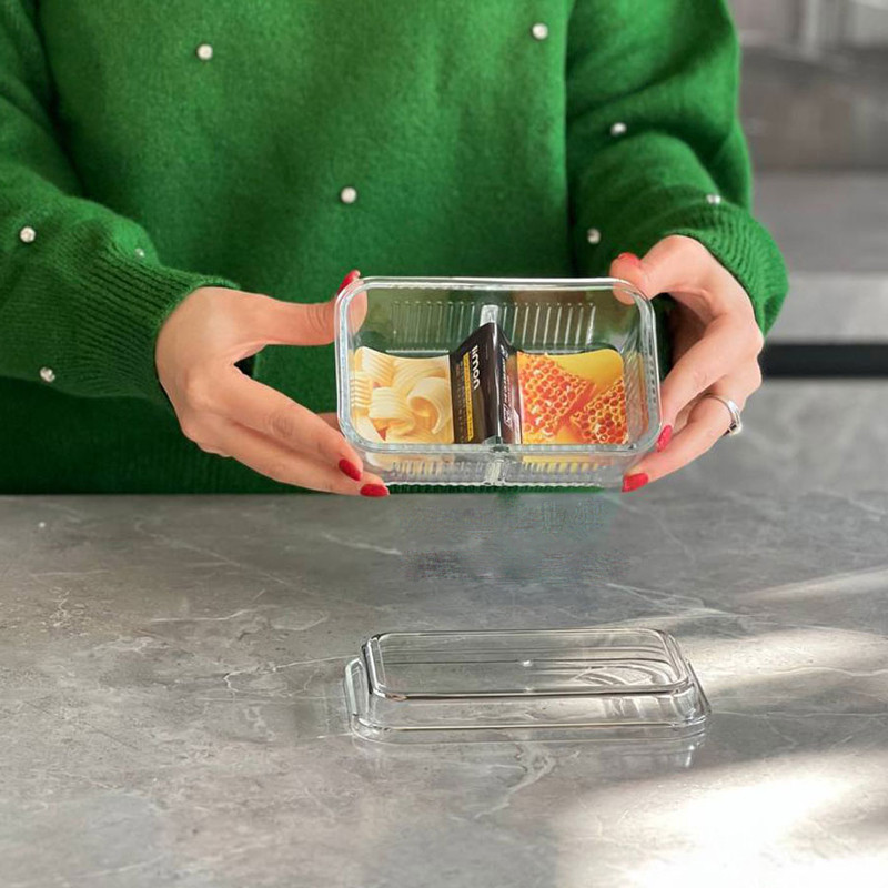 شکل ظرفمستطیلنوع دربفشاریابعاد14x10x5 سانتیمتروزن390 گرمجنس بدنهشیشهقابلیت شستوشوبا دست , با ماشین ظرفشوییرنگبی رنگ
