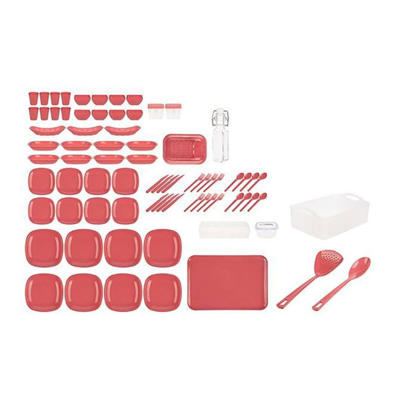 سبد پیکنیک با قابلیت استفاده بهعنوان ظرف نگهدارنده - دارای سرویس غذاخوری 8 نفره شامل: - یک عدد دیس با ابعاد 20 × 30 سانتیمتر - هشت عدد بشقاب غذاخوری با ابعاد 2 × 21 × 21 سانتیمتر - هشت عدد پیشدستی با ابعاد 2 × 17.3 × 17.3 سانتیمتر - هشت عدد بشقاب گود