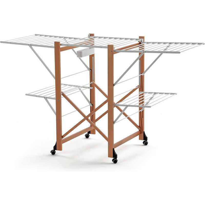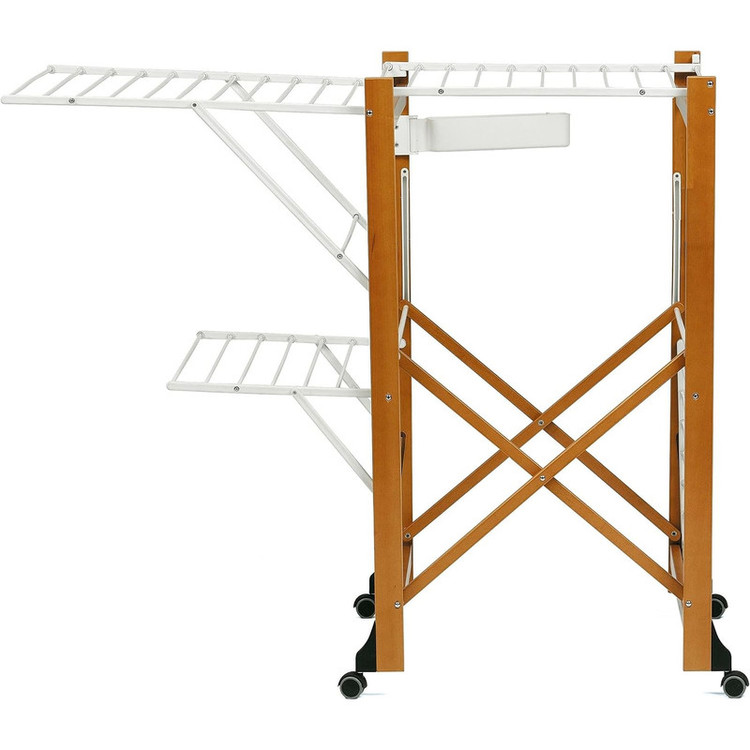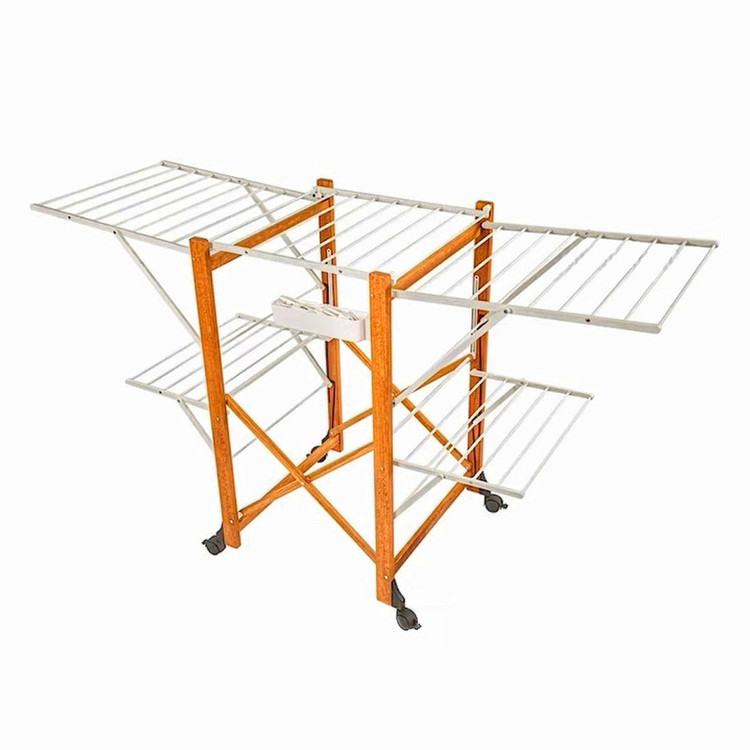 بند رخت آپارتمانی چوبی جنس بدنه چوبی ضد آب هست قسمت آویز لباس کاملا نشکن است نسبت به بند رخت های معمولی بسیار جا دار تر و کاربردی تر هستش