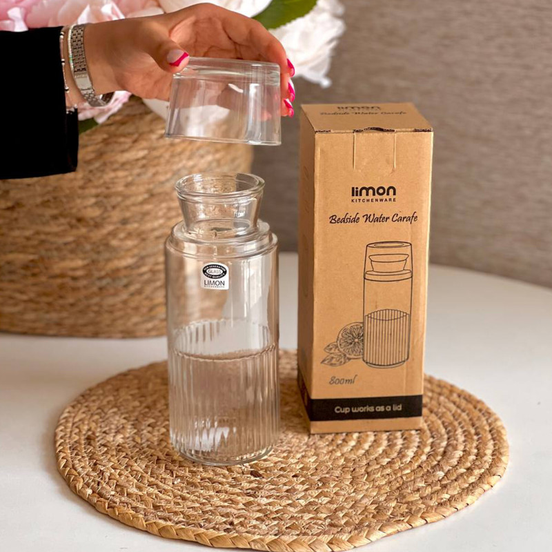 جنس بدنه بطری و لیوان: بلور شیشه بطری خط دارد ارتفاع کل: 22 سانتی متر قطر دهانه: 6 سانتی متر ارتفاع بطری: 20.5 سانتی متر حجم: 800 میلی لیتر