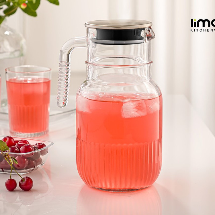 بطری لیمون مدل شیشه ای شیاردار درب استیل کد H2357