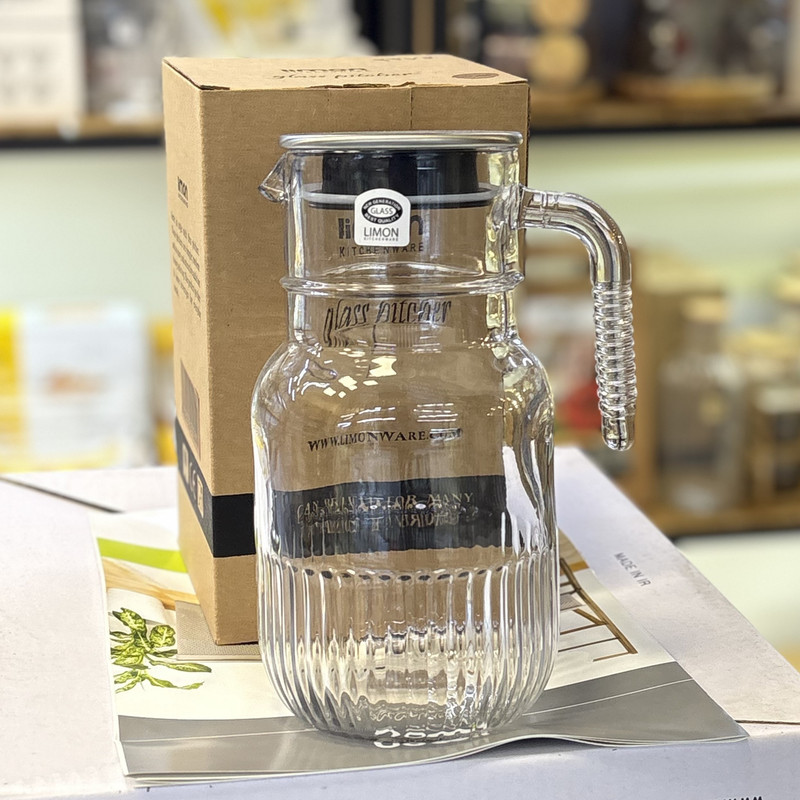 بطری لیمون مدل شیشه ای شیاردار درب استیل کد H2357