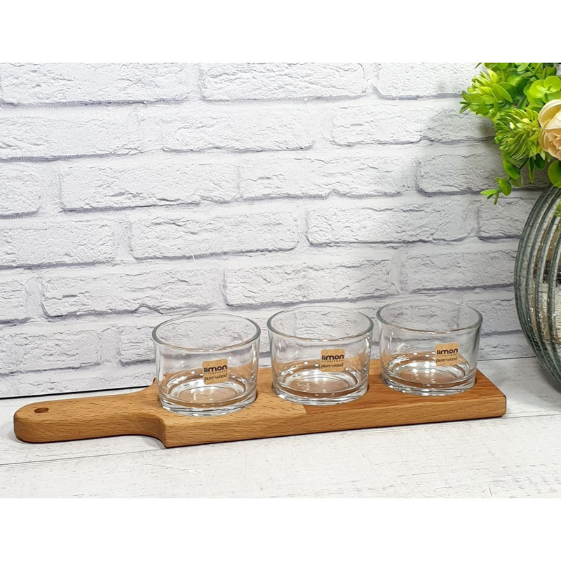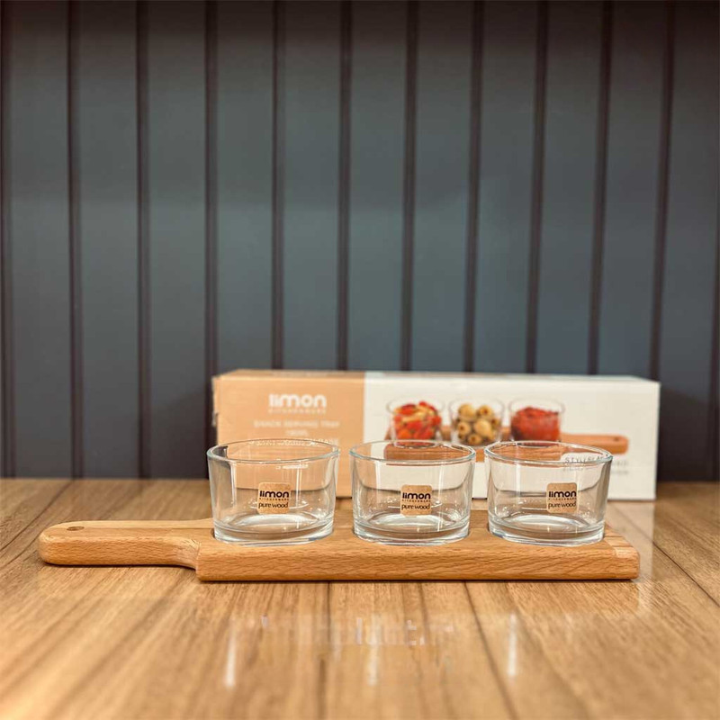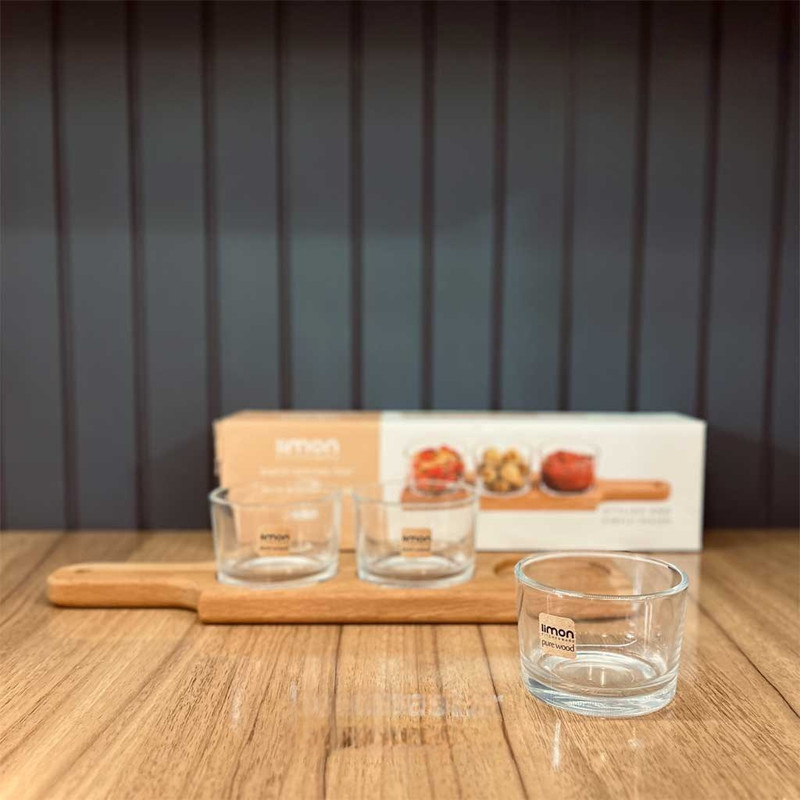 اردوخوری لیمون مدل گرد پایه چوبی مجموعه 4 عددی