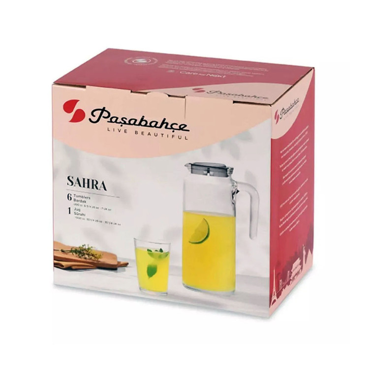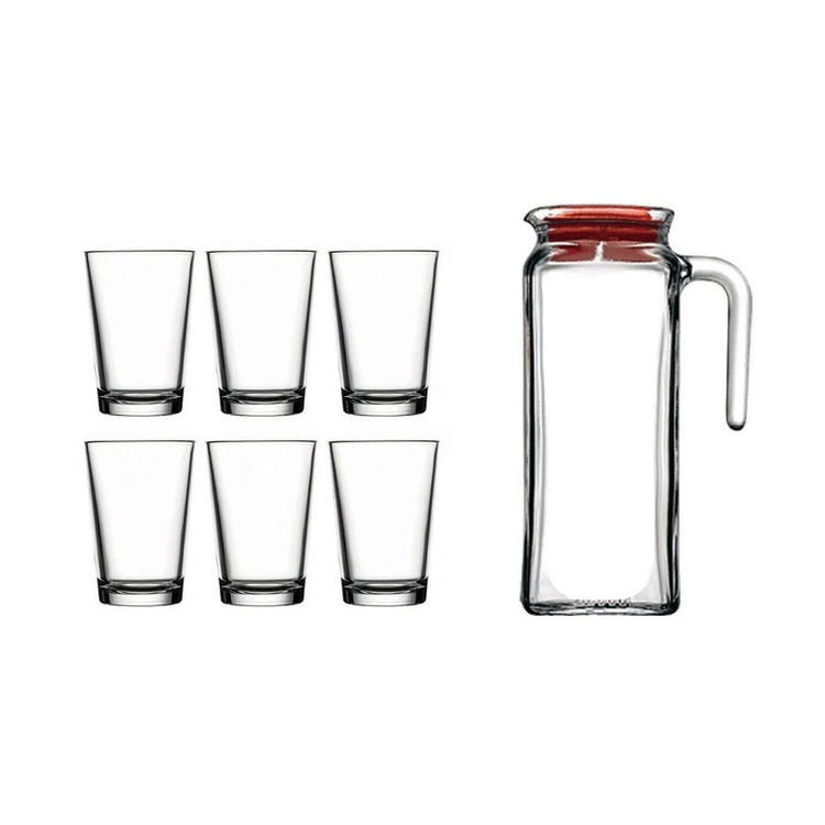 محصول کشور ترکیه- یک پارچ و ۶ لیوان- گنجایش پارچ یک لیتر و گنجایش هر لیوان ۲۰۰ میلی لیتر