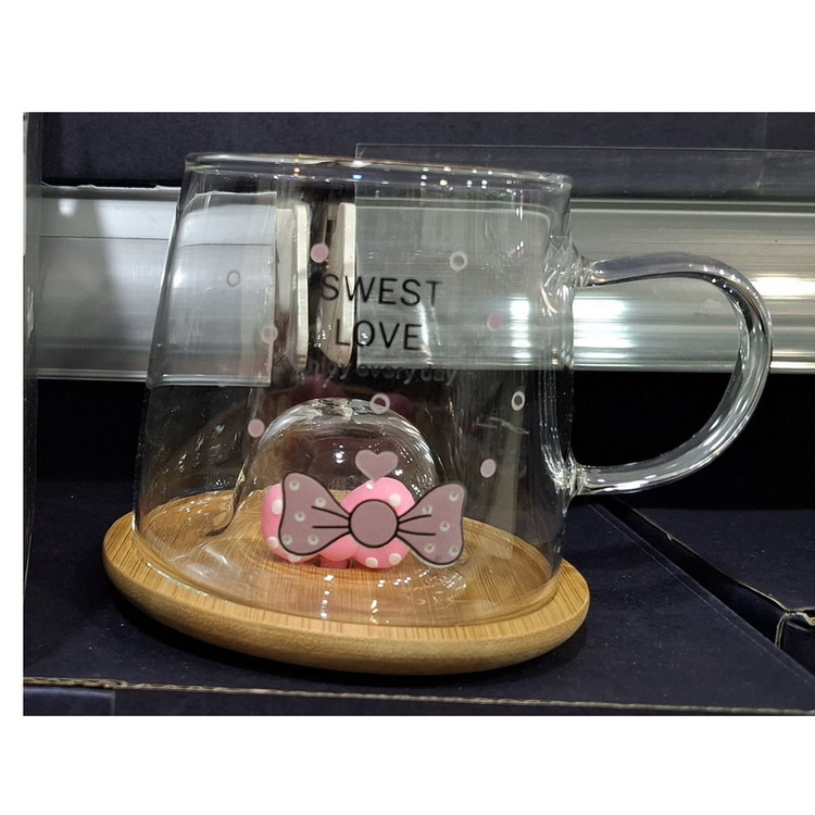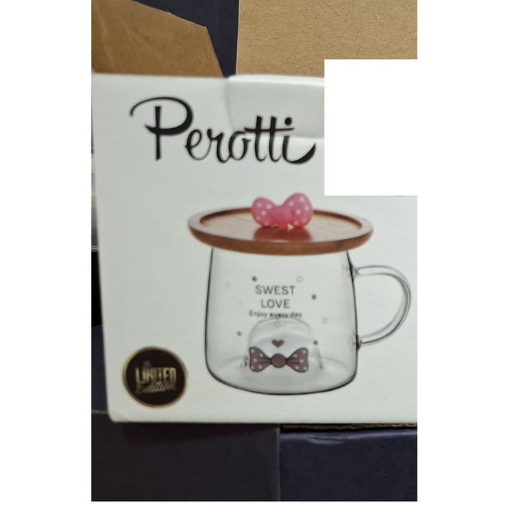 نیم لیوان شیشه ای دسته دار Perotti طرح پاپیون به همراه زیر لیوانی