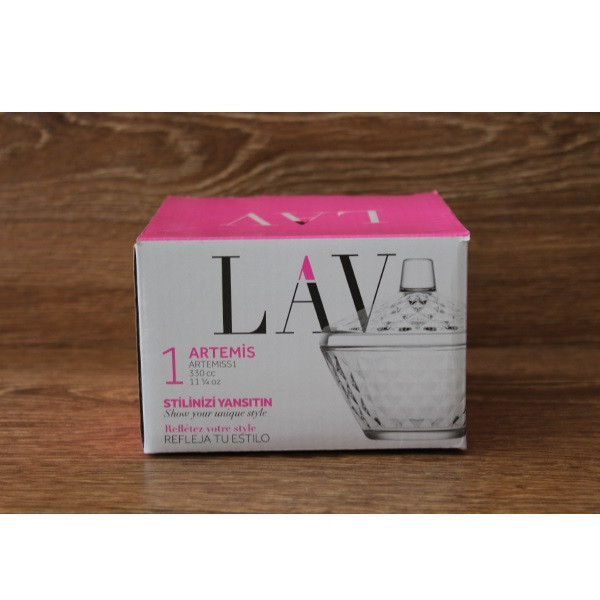 قندان لاو مدل ARTEMISS1 از تولیدات برند لاو می باشد. ارتفاع، گنجایش، قطر دهانه و وزن آن به ترتیب معادل 12 سانتی متر، 330 سی سی، 8 سانتی متر و 470 گرم می باشد. برند لاو متعلق به کشور ترکیه می باشد و یکی از مشهورترین و بهترین برند ها در زمینه انواع ظروف شیشه ای و ظروف آشپزخانه می باشد که دارای سابقه 20 ساله است. برند لاو نه تنها در ترکیه بلکه در بسیاری از کشور ها از جمله اسپانیا ،آمریکا ، برزیل و چین در 120 کشور محصولات خود را به فروش می رساند.