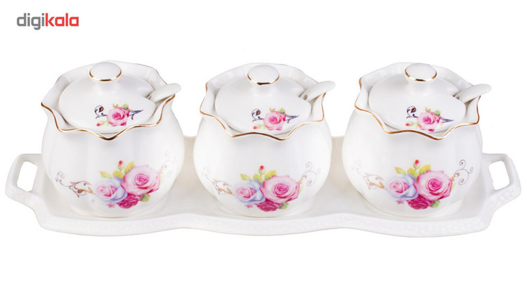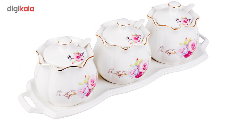 ست سه تایی همراه با سینی دارای درب سرامیکی به همراه قاشق سرامیکی مناسب جهت استفاده در تزیین دکوراسیون آشپزخانه طراحی منحصربه فرد مناسب برای نگهداری چای خشک ، قهوه و انواع ادویه دارای جعبه کادویی زیبا مناسب جهت هدیه دادن به عزیزانتون