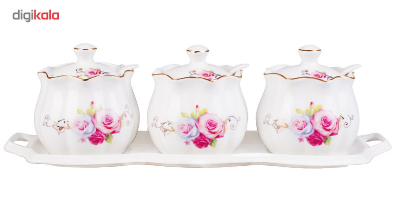 ست سه تایی همراه با سینی دارای درب سرامیکی به همراه قاشق سرامیکی مناسب جهت استفاده در تزیین دکوراسیون آشپزخانه طراحی منحصربه فرد مناسب برای نگهداری چای خشک ، قهوه و انواع ادویه دارای جعبه کادویی زیبا مناسب جهت هدیه دادن به عزیزانتون
