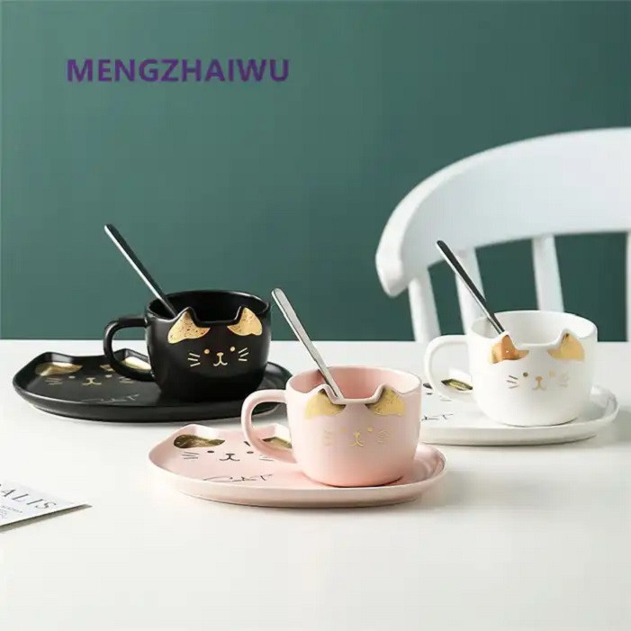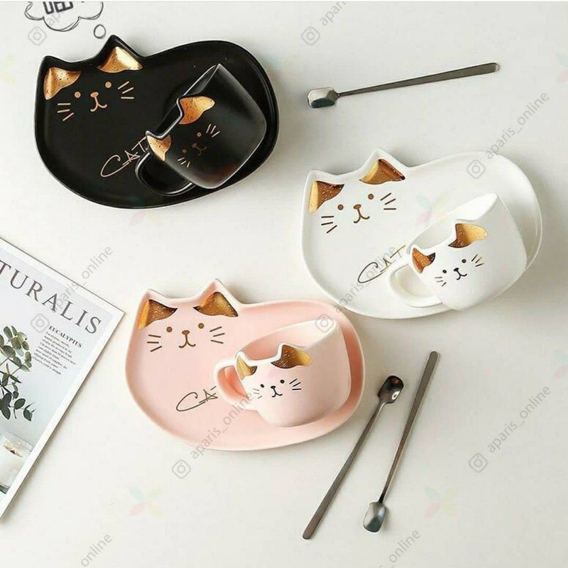 ماگ مدل گربه کد 1369n 546 به همراه زیر لیوانی