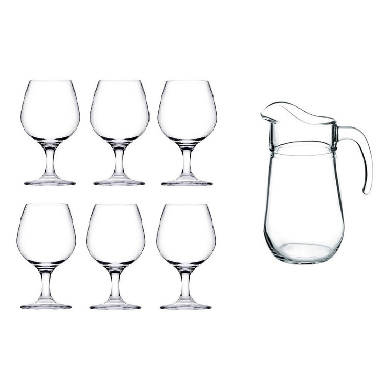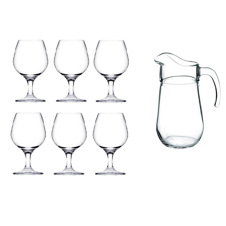 ابعاد پارچ : قطر قسمت باریک 12 – قطر قیمت پهن 17 – ارتفاع 24 سانتیمتر گنجایش: 1.3 لیتر ابعاد گیلاس امبر Amber : ارتفاع گیلاس امبر : 18 سانتی متر قطر گیلاس امبر : 6 سانتیمتر حجم : 395 سی سی