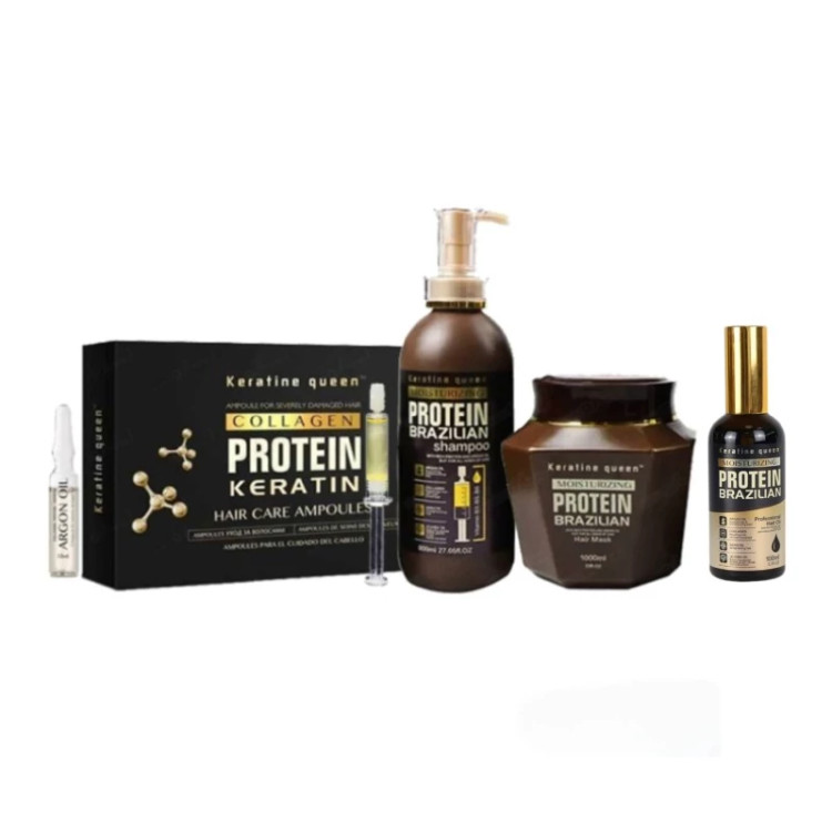 پک چهار عددی کراتین کویین برزیلی مدل پروتئین (شامپو+ماسک+ویال مو+روغن مو)