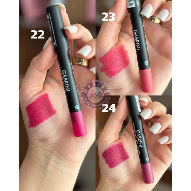 رژلبهای گابرینی در انواع مدادی و جامد و در رنگهای متنوع موجود هستند.