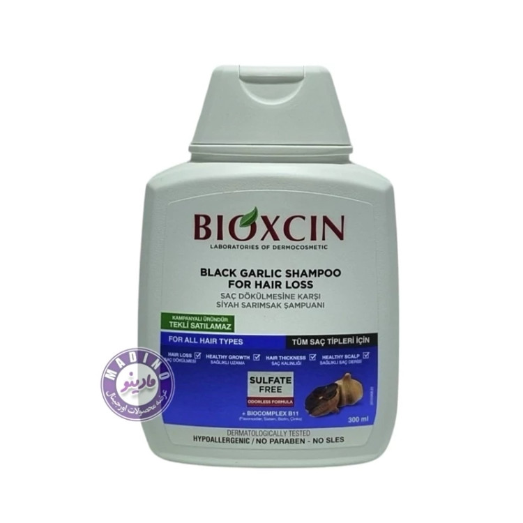 شامپو ضد ریزش مو بیوکسین حاوی عصاره سیر سیاه BIOXCIN حجم 300 میل
