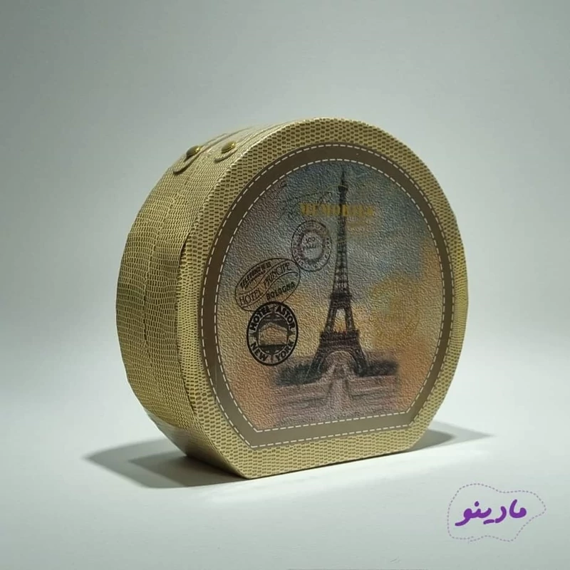 طراحی بطری ادکلن Memories با شیشه گرد، درپوش طلایی و جعبه با طرح چمدان و نمادهایی از شهرهای مختلف، ظاهری شیک و نوستالژیک دارد.