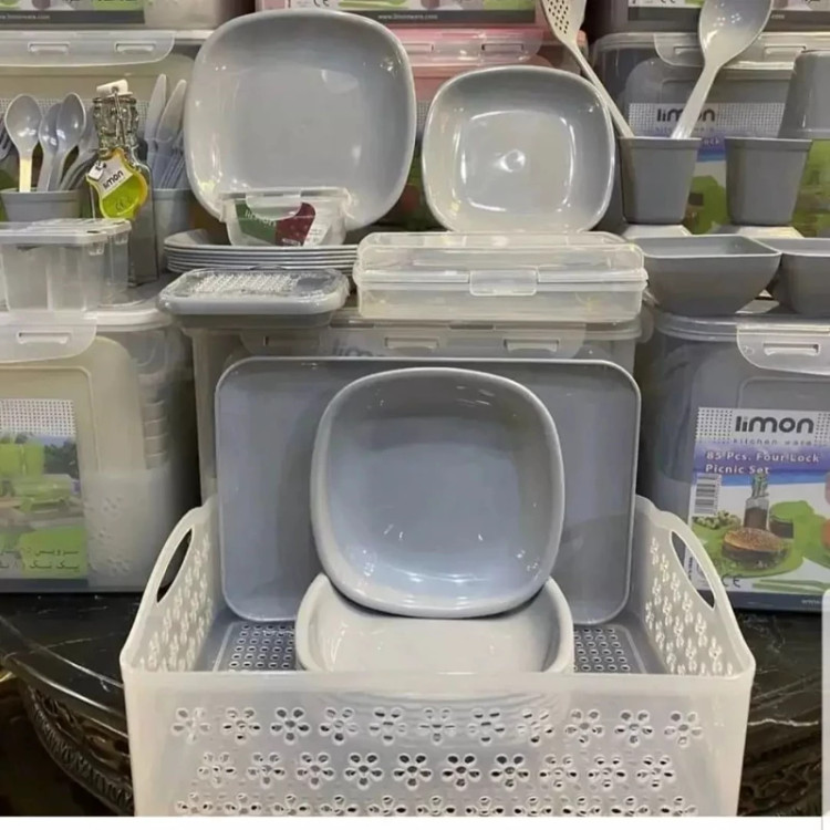 6 کارد-6 چنگال-6 قاشق-6 پیاله-6 پلوخوری-6 خورشت خوری-6 پیش دست-6 لیوان-3 جانونی-1 دیس-1 جاقاشقی-1 سبد-1 نمکپاش-1 کفگیر-1 ملاقه-1 فریزری-1سبدنان-1سبد ظروف