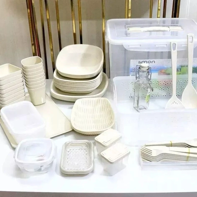 6 کارد-6 چنگال-6 قاشق-6 پیاله-6 پلوخوری-6 خورشت خوری-6 پیش دست-6 لیوان-3 جانونی-1 دیس-1 جاقاشقی-1 سبد-1 نمکپاش-1 کفگیر-1 ملاقه-1 فریزری-1سبدنان-1سبد ظروف