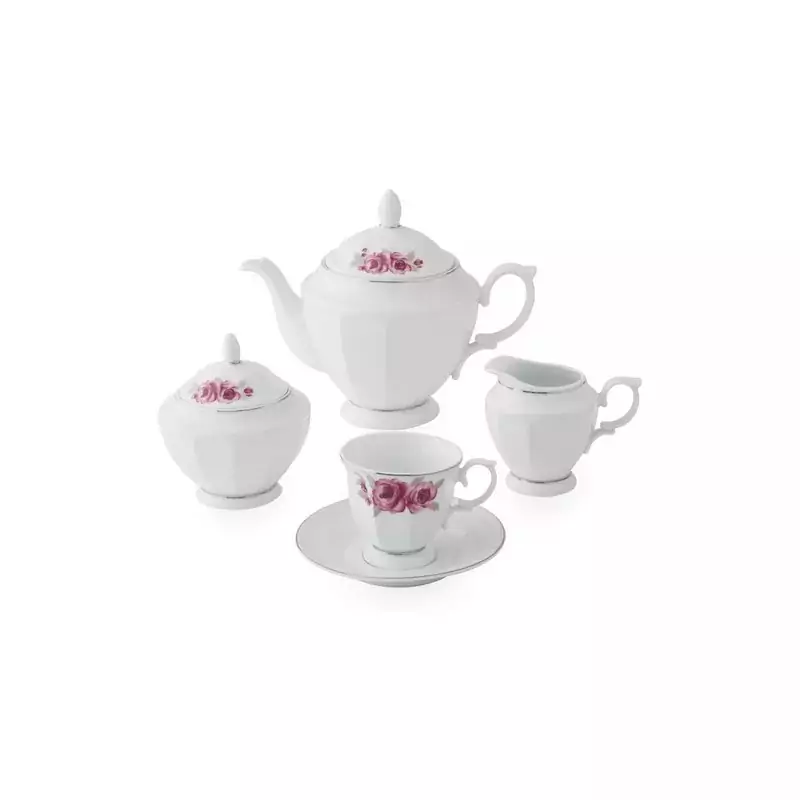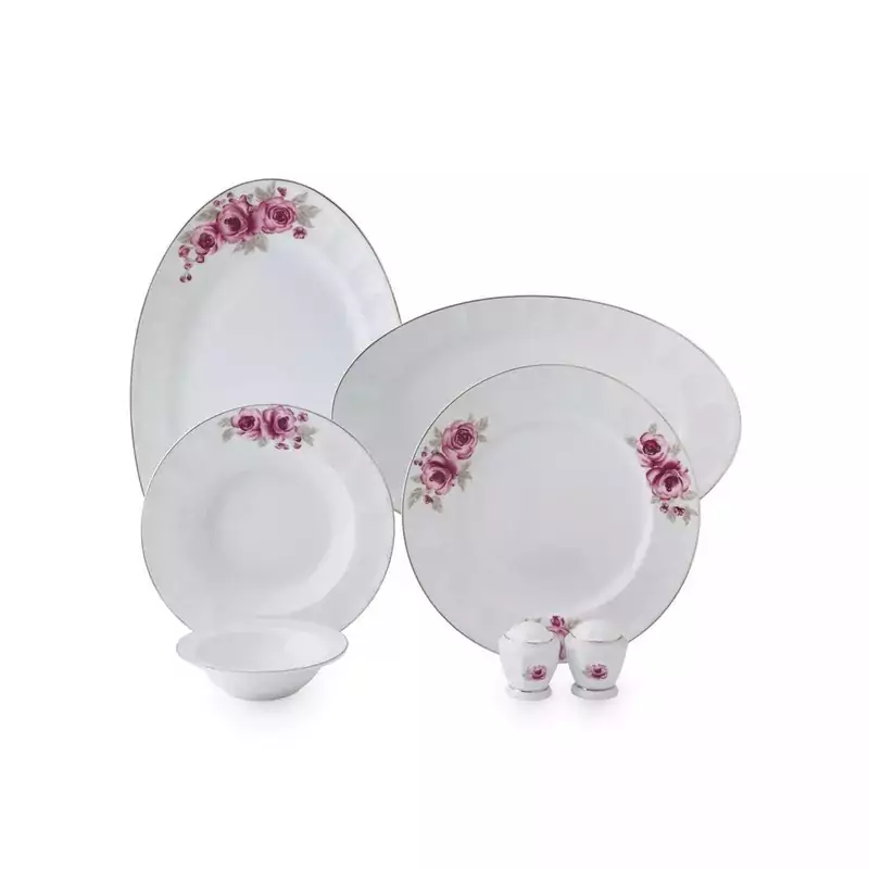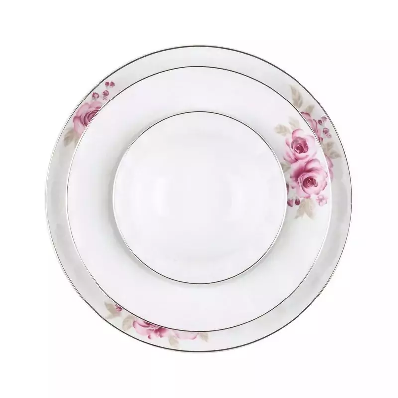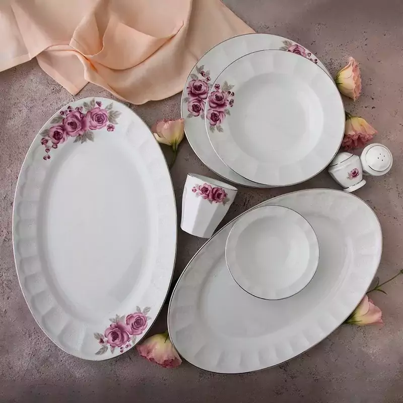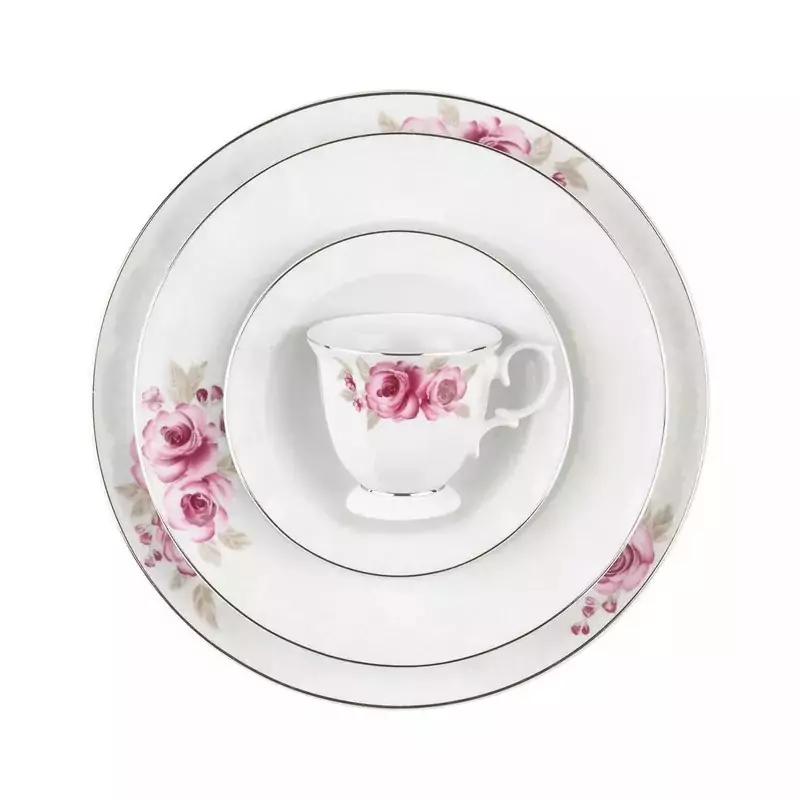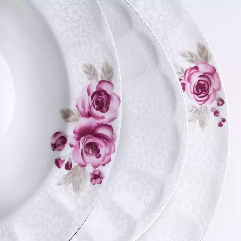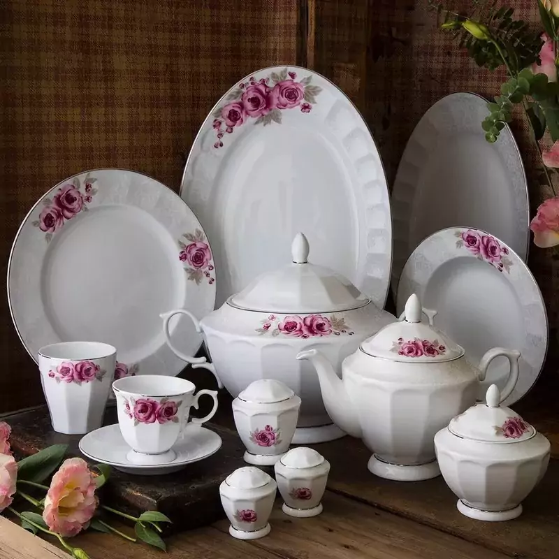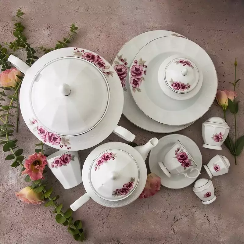 سرویس چینی دوازده نفره رز گاردن چینی زرین از سری نئوکلاسیک که به تازگی در این سال جاری طراحی و تولید شده است مناسب برای پذیرایی از دوازده نفر است و با طراحی طرح سنگ و سفید محو هارمونی جذابی به این طرح داده است. از جمله تغییرات کاربردی این سرویس میتوان به بشقاب های بزرگ 27 سانتی اشاره کرد که بسیار مناسب برای صرف وعده غذایی است.