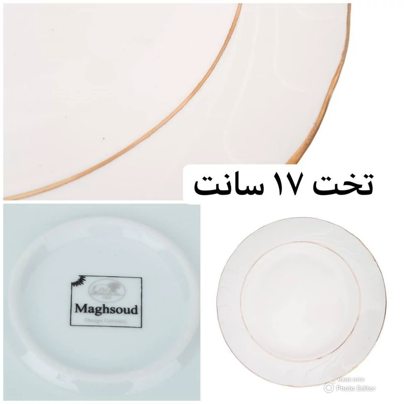 بشقاب کیک خوری چینی مقصود لب طلایی 17 سانت