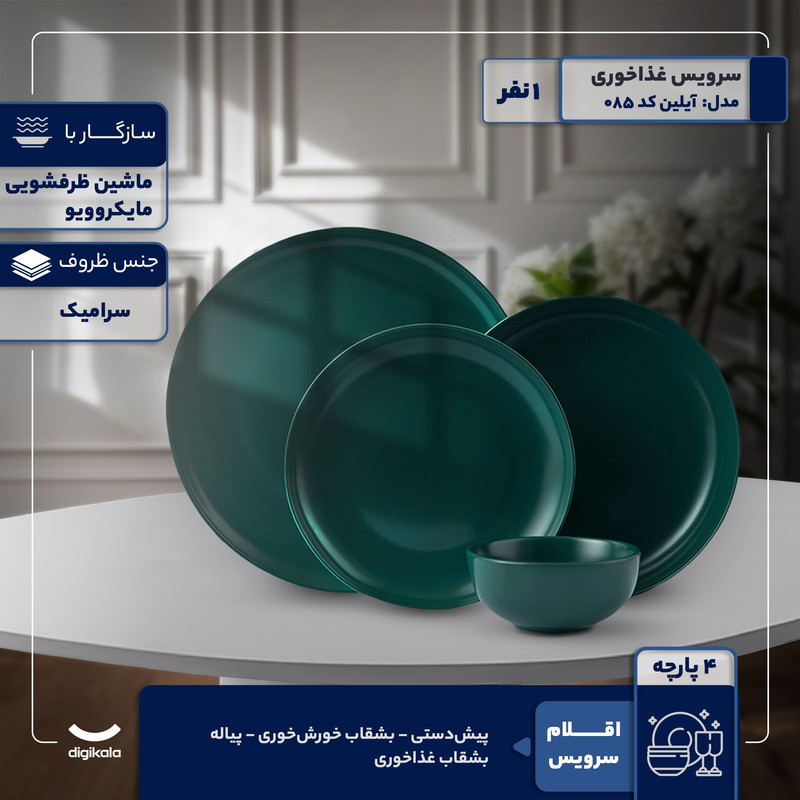 اقلام سرویس: بشقاب غذاخوری , بشقاب خورشخوری , پیشدستی , پیاله