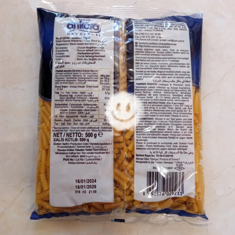 ماکارونی آنکارا سدانو فرمی لوله ای کوتاه بسته 500 گرم ترکیه