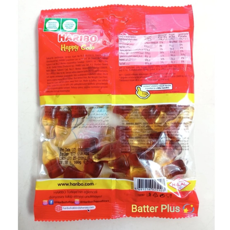 پاستیل هاریبو Haribo طرح نوشابه ای کولا بسته ی160 گرمی ترکیه