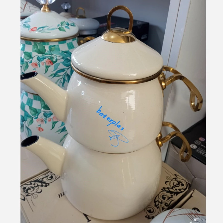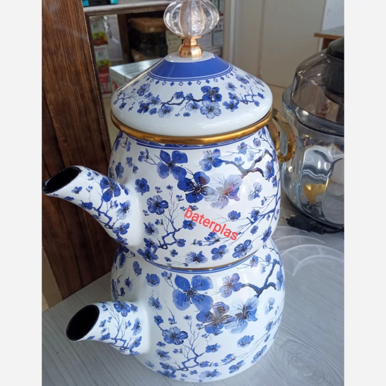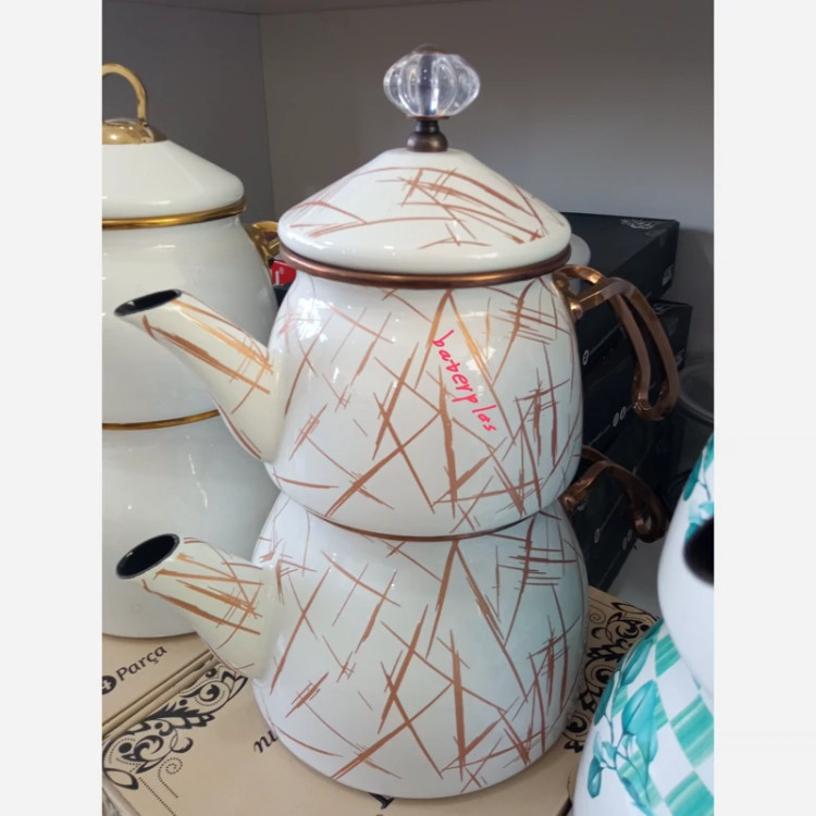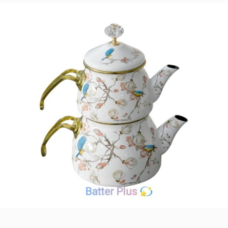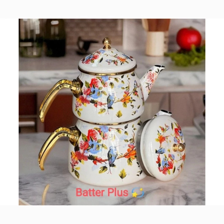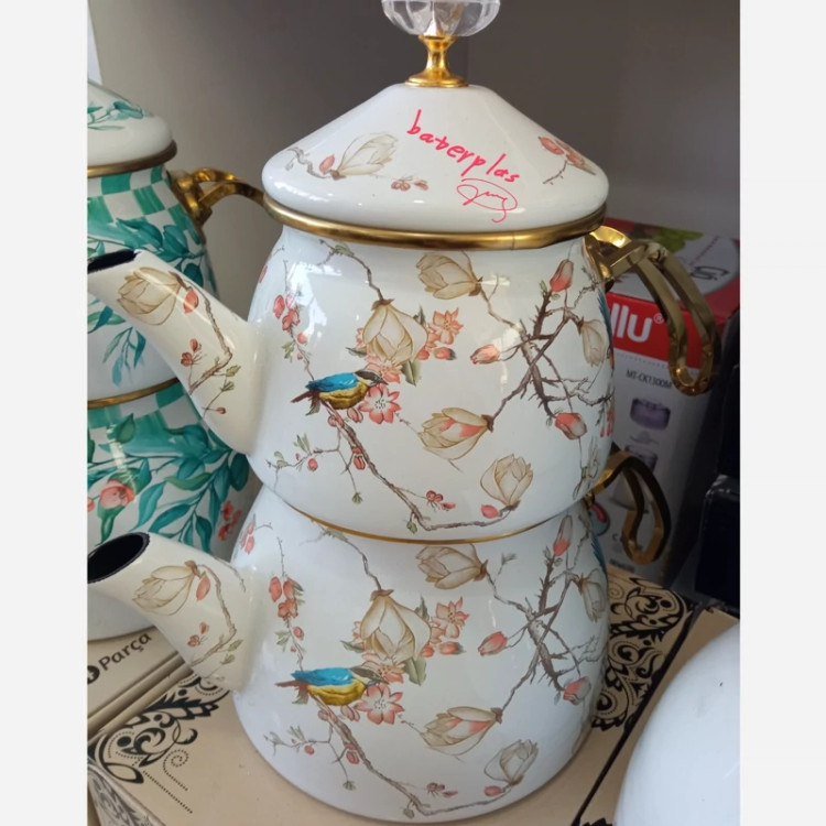 کتری و قوری دو درب طرحدار محصول کشور ترکیه برند شاهین دارای دو درب جداگانه کتری 2/1 لیتر قوری 1 لیتر وزن کتری: 1500 گرم جنس بدنهی کتری: لعابی گنجایش کتری: 2لیتر جنس دسته کتری: استیل