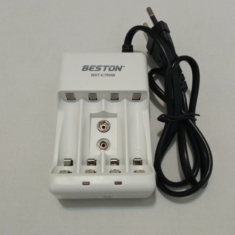 دستگاه شارژر باتری های قلم و نیم قلم و کتابی 9v برند بستون ( BESTON) مدل BST-C705W کابل دار